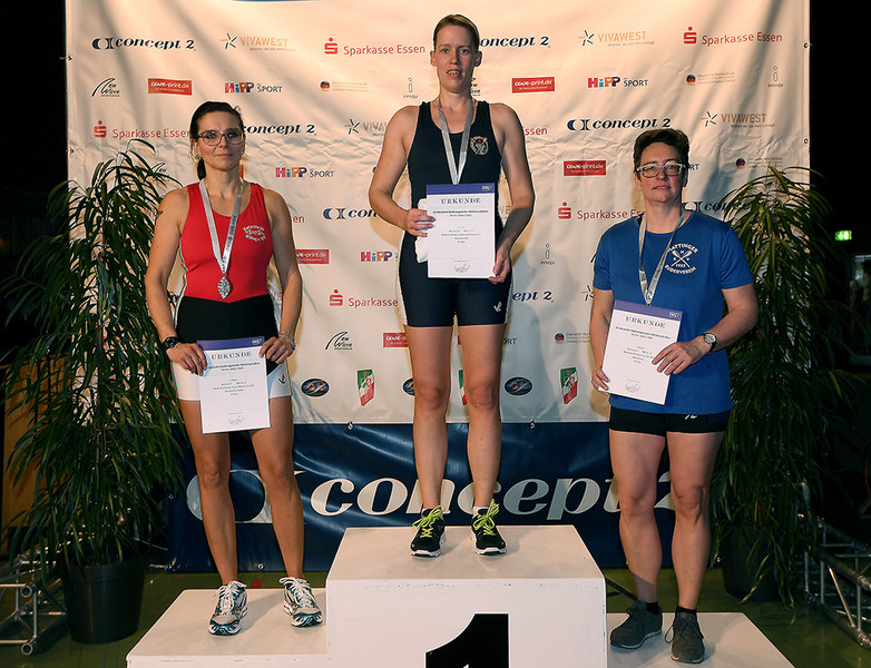 Zugegebenermaßen sind bei den Masters die Rennen nicht breit besetzt, dennoch ist der Sieg von Gaby Zündorf bei den Masters 43-39 Jahre gegenüber den Gegnerinnen ein großer persönlicher Erfolg und ein schöner Erfolg für den Ruderclub. Sie wiederholte ihren Sieg aus dem Vorjahr und zeigte sich dennoch nicht ganz zufrieden. „Ich war im Vorfeld leider krank. Wenn ich richtig fit gewesen wäre, hätte ich gerne meine Bestzeit verbessert“, so die Siegerin mit gewohnt großem Ehrgeiz. Der Trainingseinsatz im Mastersbereich ist nicht zu unterschätzen, der Wille und der Kampfgeist werden bei intensivem Zeitaufwand immer wieder gefordert. Silber und Bronze gingen an Ruderinnen Claudia Ciescholka (Karlsruhe) und Inken Passe (Hattingen).
