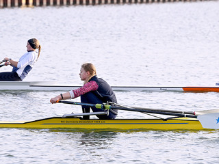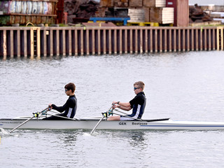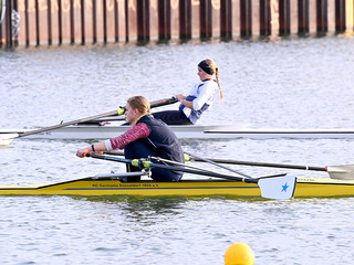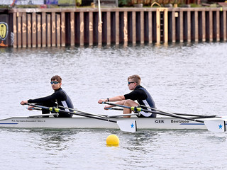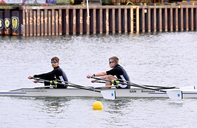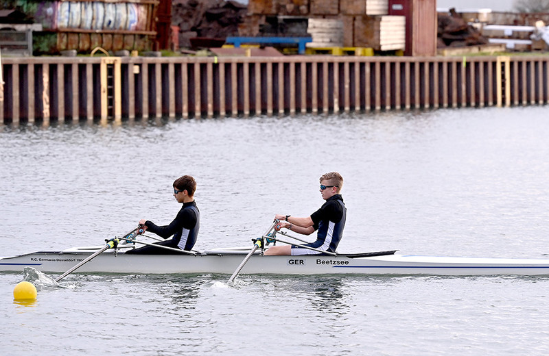 Nach sechs Kilometern auf dem Dortmund-Ems-Kanal lag das Ziel genau auf Höhe des Bundesstützpunktes Dortmund, wo zeitgleich der Kadertest der A-Nationalmannschaft über 2000 Meter auf dem Ruderergometer stattfand. Der NWRV-Nachwuchs zeigte auf dem Wasser sein Können, allen voran Stefan Sosic und Philip Richter, die im U17-Leichtgewichtsdoppelzweier (4 Boote) mit großem Abstand Schnellster waren. „Wir haben uns sehr über den ersten Platz gefreut“, so RC-Trainer Max Milde. „Sie sind schnurstracks in der Schlagfrequenz 28/29 die sechs Kilometer runtergerudert und sich den Sieg gut erarbeitet.“