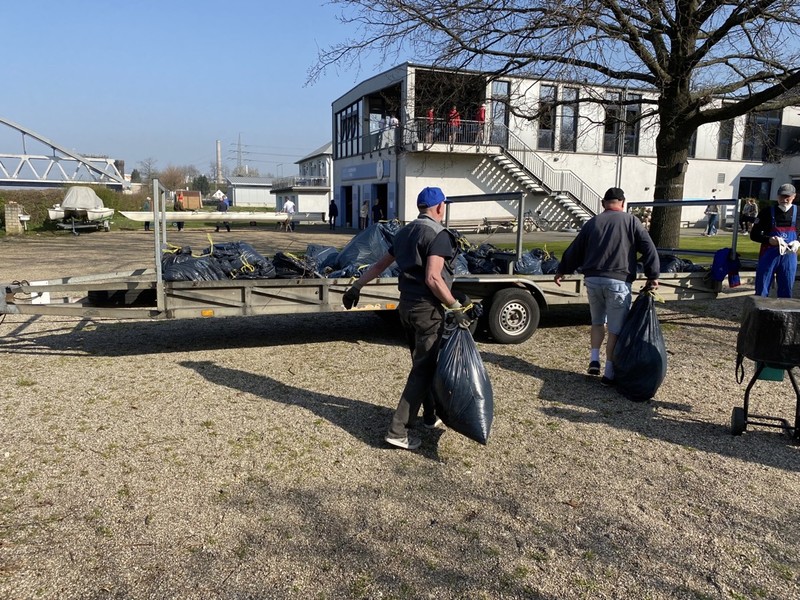 Zweimal musste der Bootshänger mit Gehölzschnitt und unzähligen Säcken mit Laub zur Sammelstelle für Grünschnitt gefahren werden. Skulls wurden gesäubert und ebenso die Kunststoffboote. Das Gelände erfuhr durch durch die fleißigen Ruderinnen und Ruderer an einigen Stellen noch einen Frühjahrsputz. Die Bootshallen wurden alle sorgsam ausgefegt und auch das Dach von Unrat befreit.